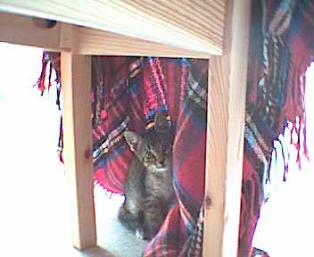 Tigger unter seinem Stuhl
