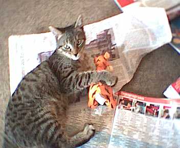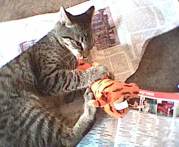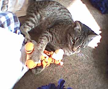 Dieser Tigger ist immer zu Unfug aufgelegt wie unser Kater. Beide sind äußerst liebenswert. Unser Tigger trägt "seinen" Stofftigger gerne durch die Wohnung.