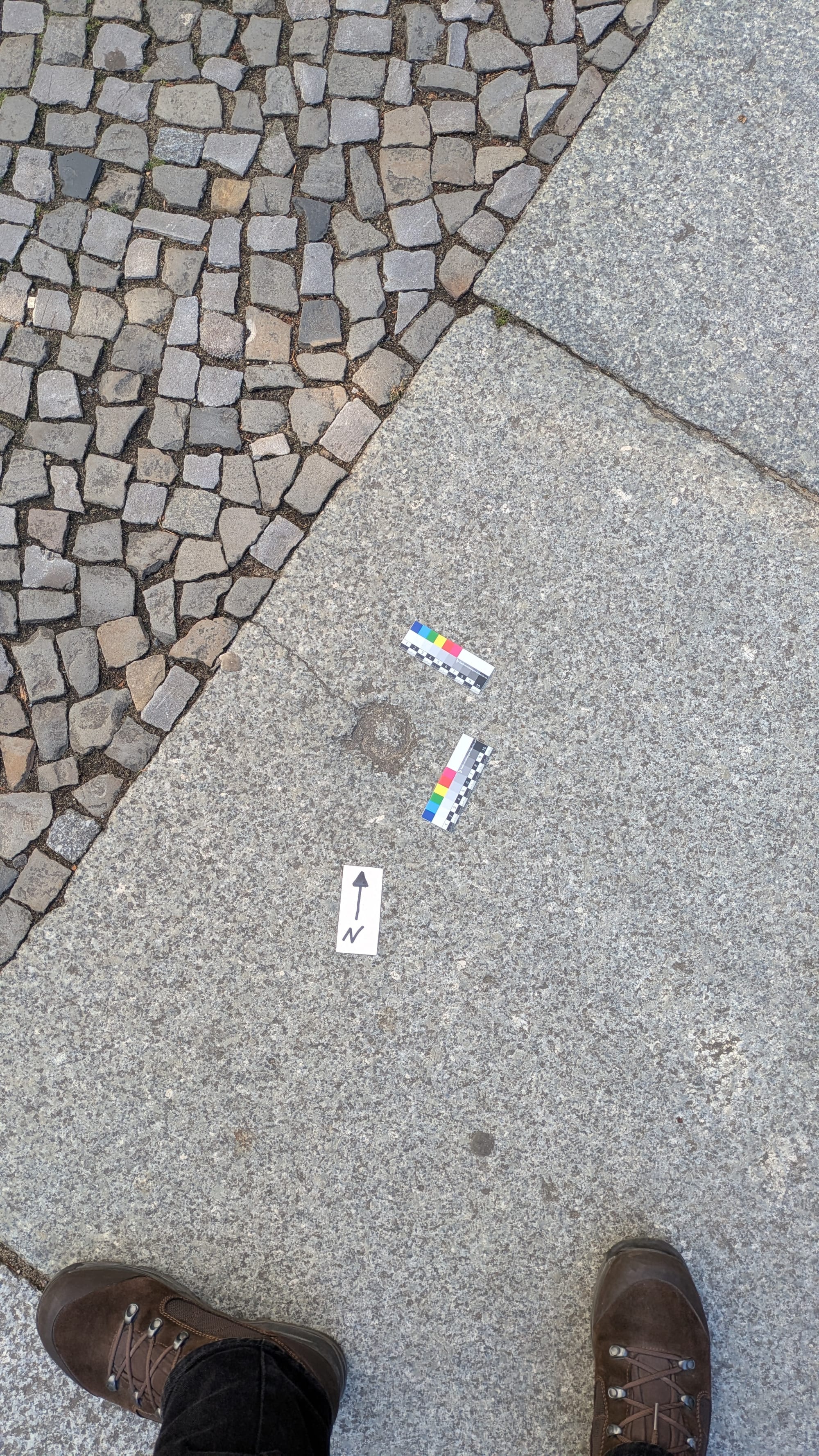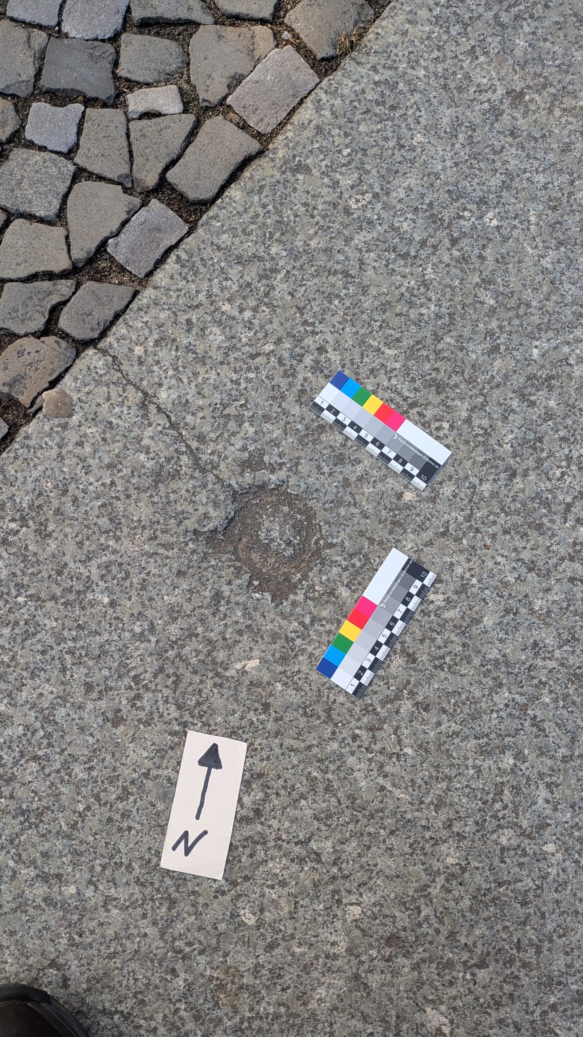 Der Krater ist durch den Einschlag einer einzelnen Flüssigkeitsbrandbombe INC30LB entstanden. Deren Messingnase hat einen Durchmesser von 5,6cm und ist von einer Blechhülle umgeben, die sich beim Aufschlag ringförmig um die Nase nach vorne wölben könnte.