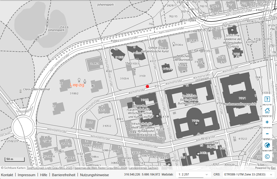 | Adresse: | Wächterstr. (gegenüber Hausnummer 13), 04107 Leipzig |