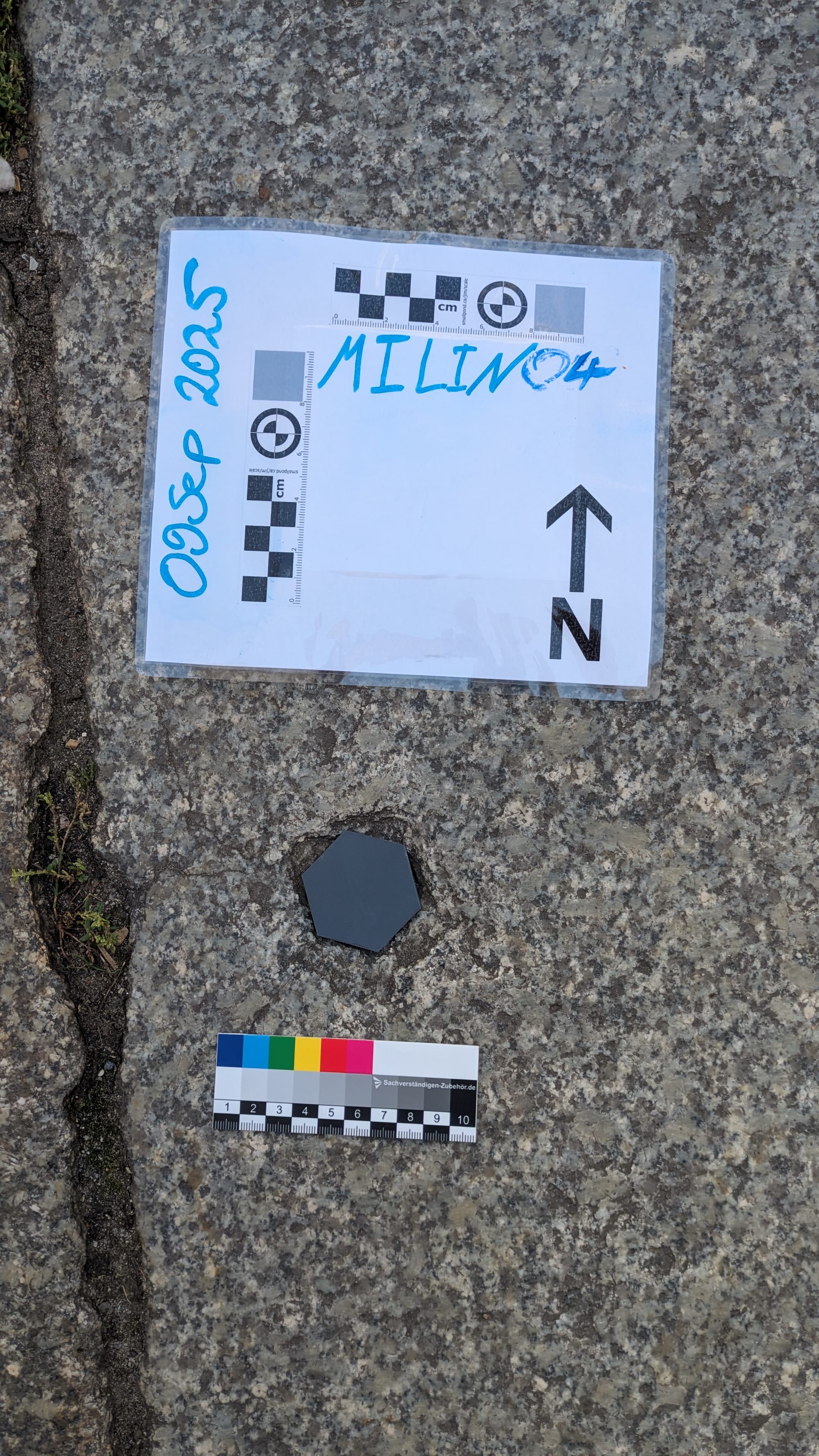 Für die Fundstelle MILIN04 wird ein Befund beschrieben. Es handelt sich um einen flachen Krater mit Frakturlinien, in den die INC 4 LB-Schablone eingelegt werden kann und Anlehnungskanten findet.