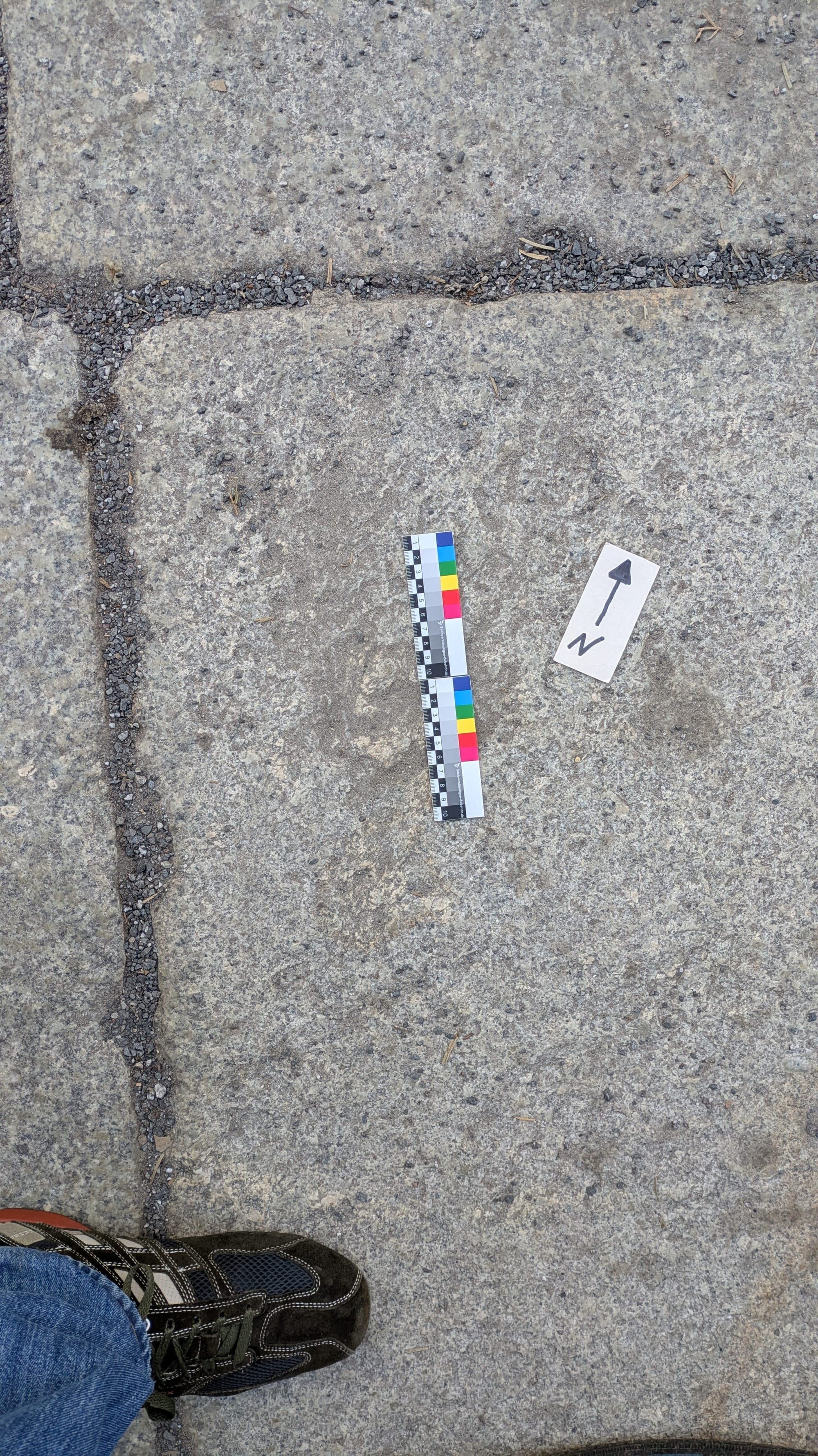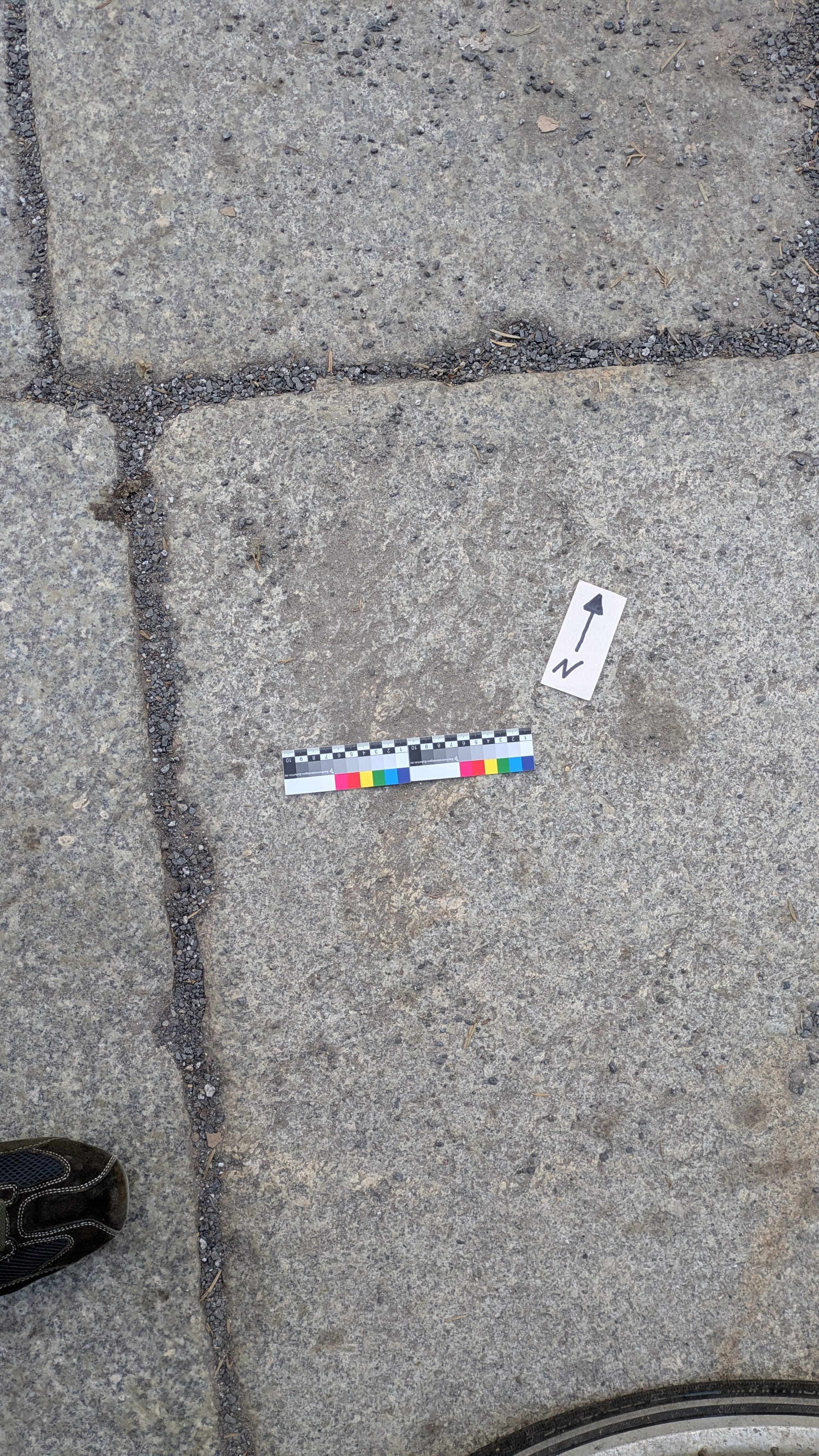 Beim Aufschlag einer Phosphorbrandbombe (INC30LB)[1] auf den Granit schlug der massive Messingkopf einen zentralen runden Krater. Durch die abrupte Abbremsung wölbte sich der dünnwandige Blechmantel um dem Messingkopf nach innen. Stehen blieb ein ringförmiger Kragen. Dieser schlug dort einen konzentrischen, ringförmigen Eindruck.